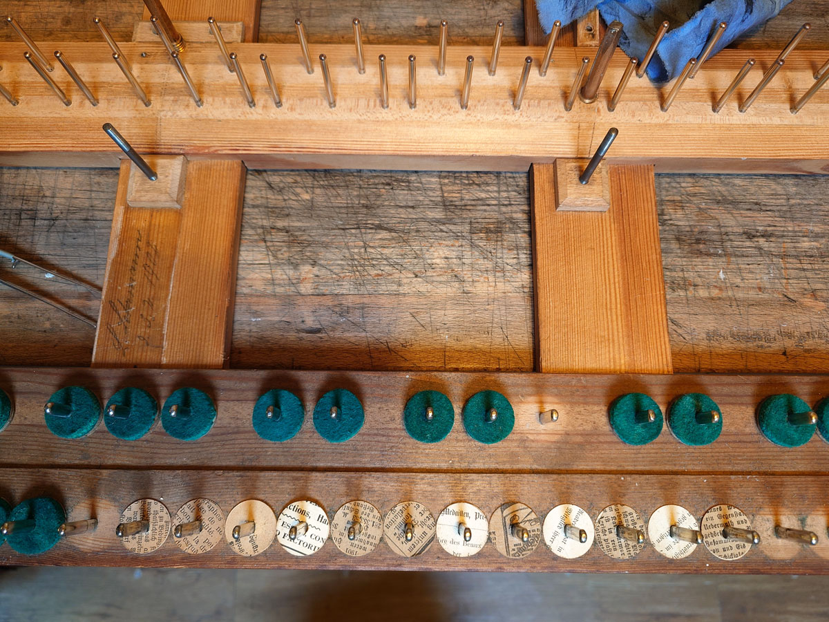 Toutes les garnitures du clavier sont remplacées ; ici, les casimir des mortaises de balancier.